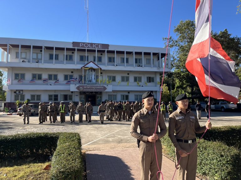 งานป้องกันปราบปราม เข้าแถวเคารพธงชาติ เมื่อวันที่ ๒๑ มกราคม ๒๕๖๘ เวลา ๐๘.๐๐ น. พ.ต.อ.แมน ศิริฉาย ผกก.สภ.สหัสขันธ์ นำข้าราชการตำร