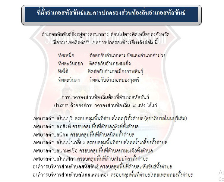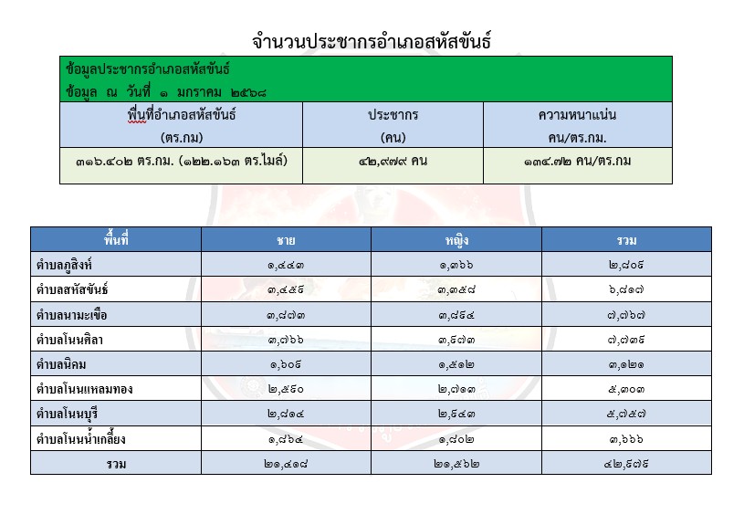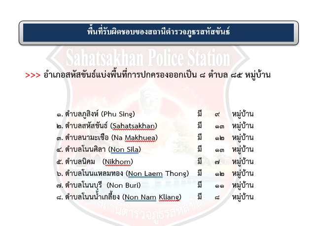 ข้อมูลพื้นที่รับผิดชอบสถานีตำรวจภูธรสหัสขันธ์