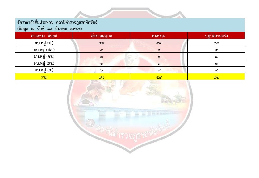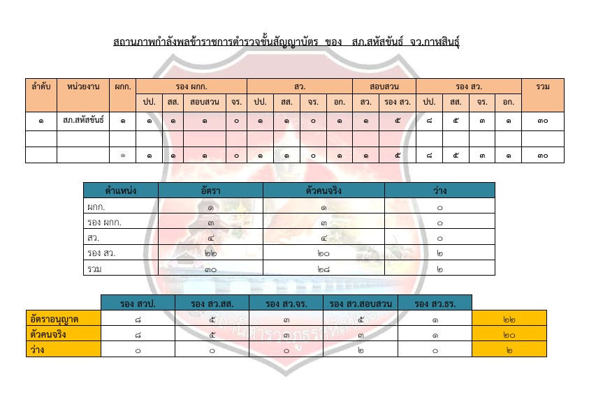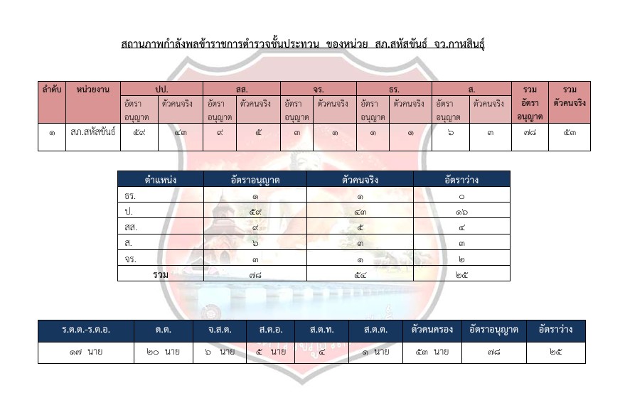 ข้อมูลอัตรากำลังพล สถานีตำรวจภูธรสหัสขันธ์
