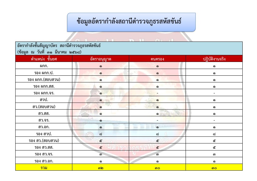 ข้อมูลอัตรากำลังพล ณ วันที่ ๓๑ มีนาคม ๒๕๖๘